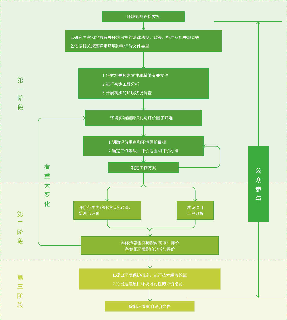 流程如下:分析研判、商务洽谈、现场踏勘、信息交流、第一次公示、现场调查与监测、工程分析与预测、编制报告、第二次公示、报告内审、报告评审、总量申请、受理公示、审批公示、获取批复。